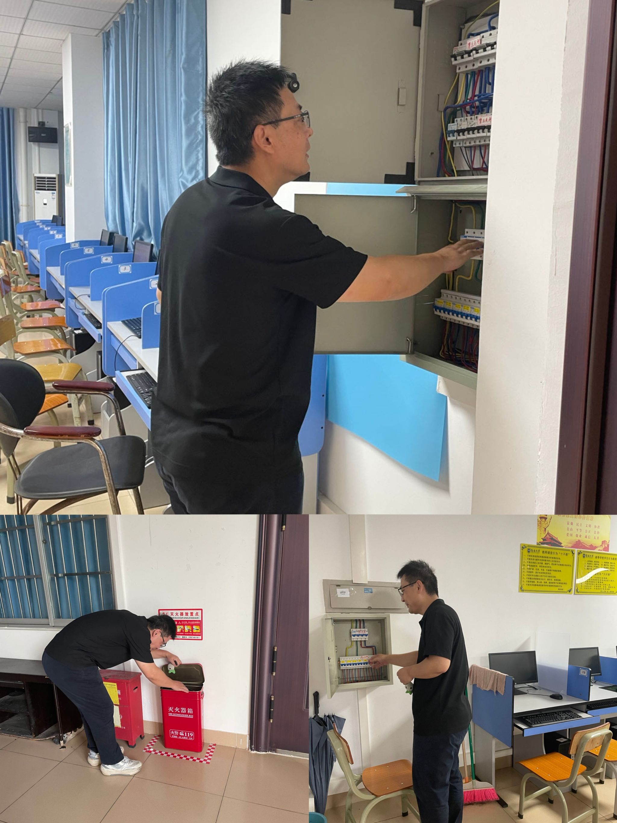 按《jdb电子中国官方网站实验室与设备管理处关于进一步落实院级单位实验室安全职责的通知》(海大实〔2023〕48号)要求,确保各项实验室安全管理制度落到实处,切实筑牢校园安全防线,及时排除安全隐患,保障教学和科研工作的顺利进行。2023年10月30日,在jdb电子实验室主任毛旭强老师和科研与教学办公室主任王燕华的带领下,学院开展10月份实验室安全检查常规工作。本次检查,重点是对jdb电子的教学实验室和科研实验室中的服务器存放环境、消防设施、门、窗等设备进行安全检查。