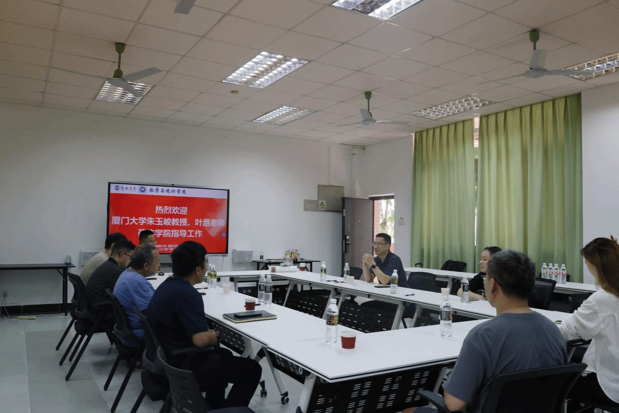 7月11日上午,国家天元数学东南中心执行委员会委员兼秘书、厦门大学朱玉峻教授与中心办公室执行主任叶湉老师到访jdb电子中国官方网站,与学院相关领导及教师代表进行了亲切交流。